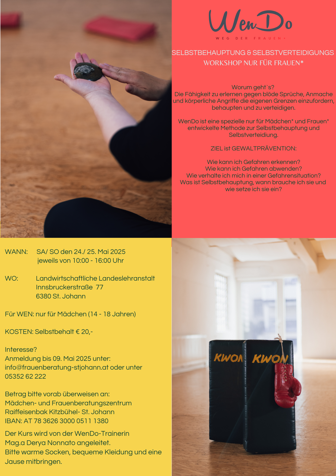 Der Kurs wird von der WenDo-Trainerin Mag.a Derya Nonnato angeleitet.